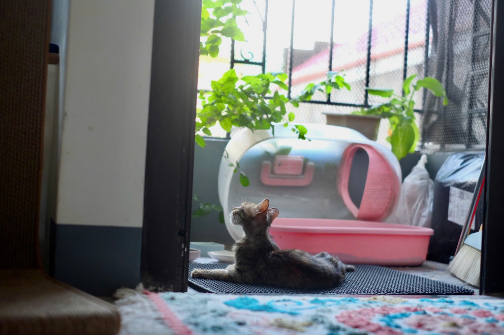 Bồ Câu là một trong hai em mèo cứu hộ tôi nhận nuôi khi trở về Việt Nam. Như cái tên của em, Bồ Câu có mùi của một chú chim đi qua mưa nắng. Ngày tôi đón về, Bồ Câu nhìn đúng kiểu “mèo hoang chó dại”, da bọc xương, mất cả mảng lông gáy, đầu đi lúc lắc. Trông vậy nhưng em sống bền bỉ và giản đơn.
